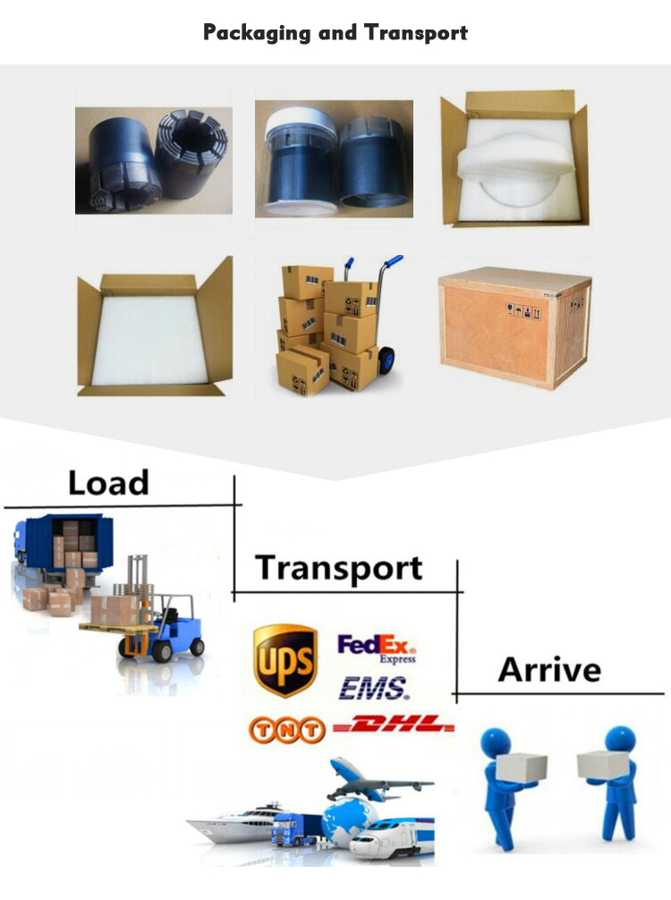 The inside diameter of the casing shoe bit is not set with diamonds sometimes(surface set Type) and flush with the inside diameter of the casing. Basically,the corresponding size of Drill Bits and Core Barrels have to get through the inner diameter of the casing shoe bits freely.